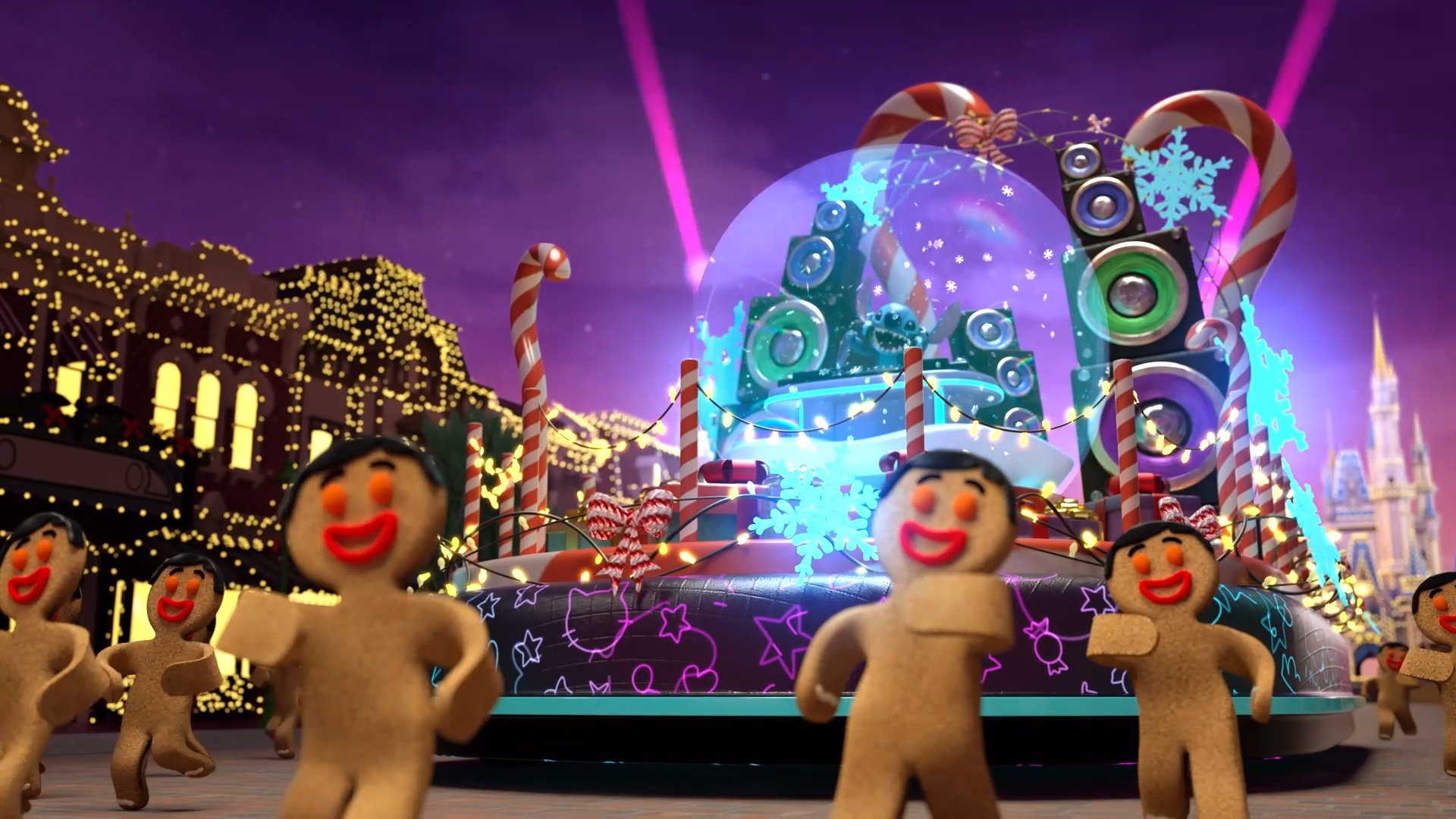 Each float includes a few hidden Easter eggs for each character, or references the first Dunk The Halls from 2024. The goal was to create a fun, exciting, and vibrant spectacle for the fans!